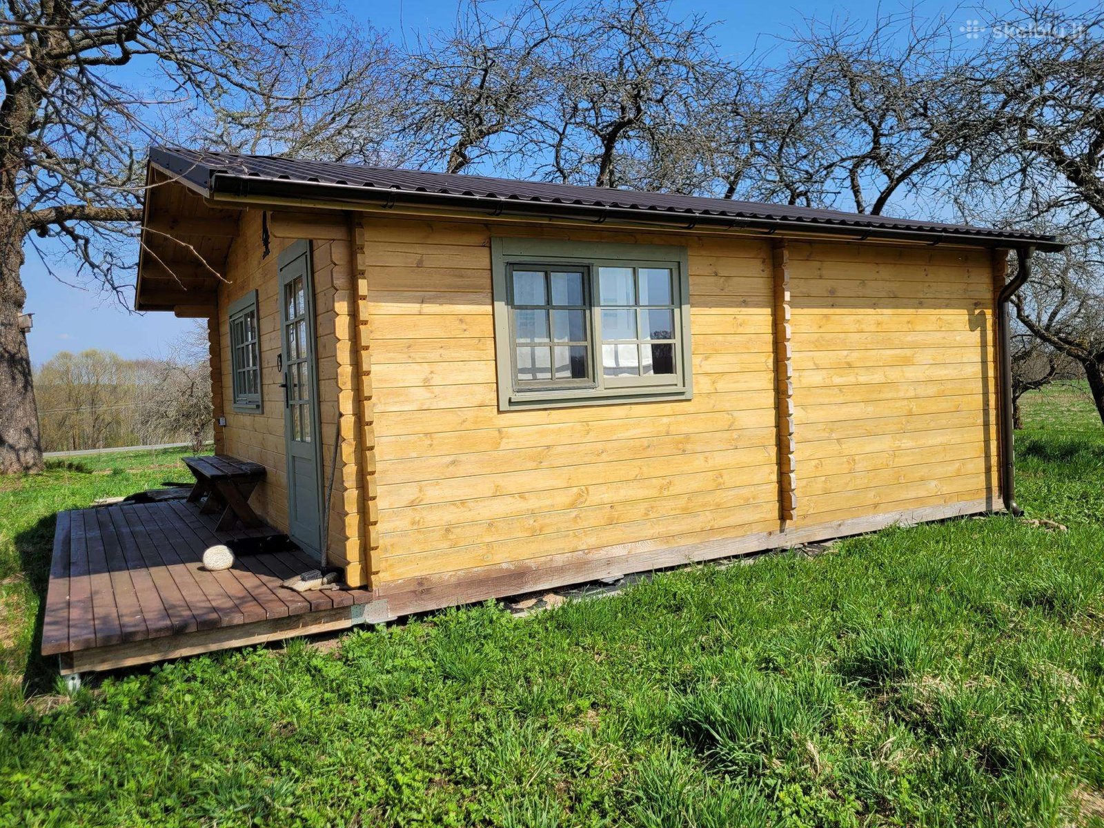- Surinkus namelį, rekomenduojame kuo greičiau nudažyti medžiui skirtais dažais.